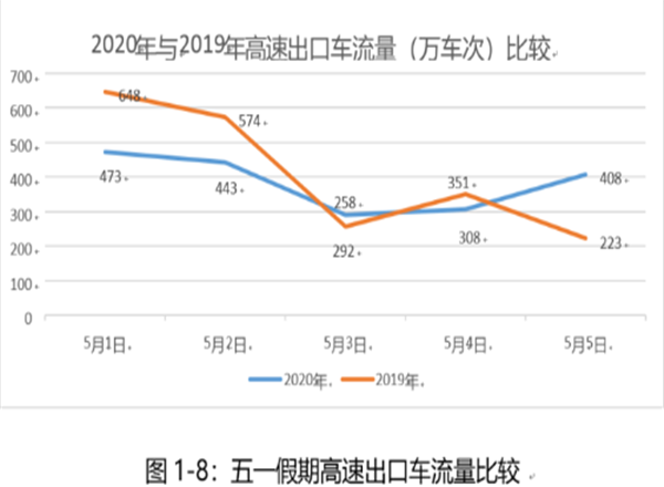 “五一”假期期間全省高速自駕車車流量1924.3萬車次,較去年同期2053.3萬車次下降6.3%。