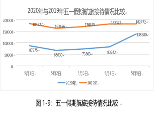 “五一”假期期間全省全域旅游人次7965.1萬人次,較去年同期9240.4萬人下降13.8%。