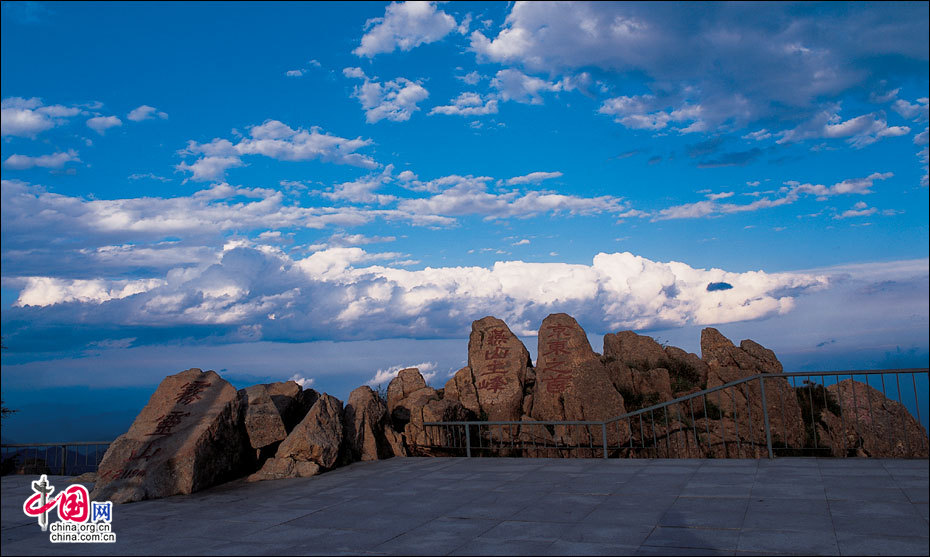 當(dāng)北京的第一縷陽(yáng)光從這里升起。站在海拔2118米的頂峰平臺(tái)上,遙望東方,天際中開始露出幾抹灰色的浮云,隨后不斷地升騰、擴(kuò)大,繼而天邊漸紅,紅色越來(lái)越深,范圍越來(lái)越大,曙光漸露,丹霞輝映,把整個(gè)東方都變成濃濃的紅色。山峰在云霧中時(shí)隱時(shí)現(xiàn),彩云在天際間變幻,有時(shí)像奔馳的駿馬,有時(shí)像仙女飄逸,有時(shí)像玉樹瓊宮……千姿百態(tài),遐想無(wú)窮。猛然,比紅色的彩云更火紅、更光亮、更鮮艷的太陽(yáng)露出了一條邊弧,緩緩上升。四周的云霧似乎忍受不了她那光茫的照射而淡化、隱退,太陽(yáng)則很快掙脫了云霧與夜色的纏繞,迅速地上升,躍出天邊。霎時(shí),一輪紅日噴薄而出,金光四射,霞光瑞氣,照徹天宇,山巒、萬(wàn)樹沐浴著朝陽(yáng)的金輝,令人眼花繚亂。舉目四望,朝霞映照下的霧靈山,群峰起伏,云霧如海,波濤洶涌,九曲十八彎的旅游公路似戲水游龍,在峰巒間若隱若現(xiàn)。