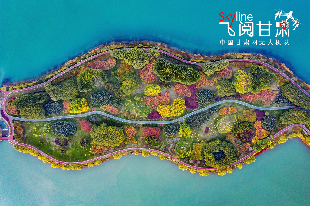 10月11日,航拍甘肅省張掖市蘆水灣旅游度假區(qū),五彩斑斕,美不勝收。(無人機照片)