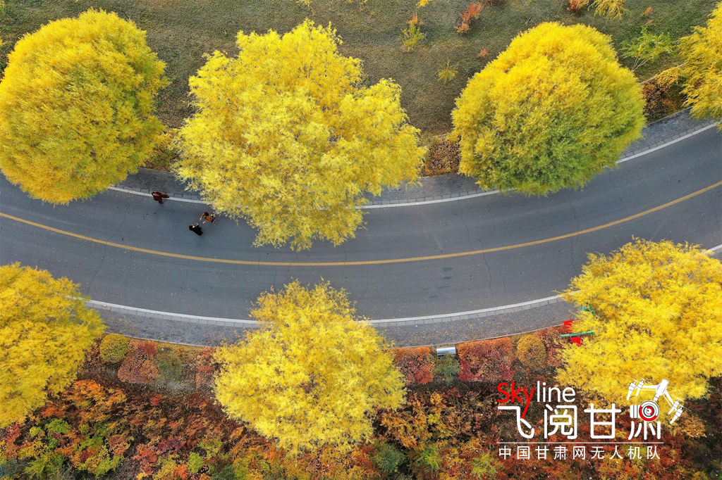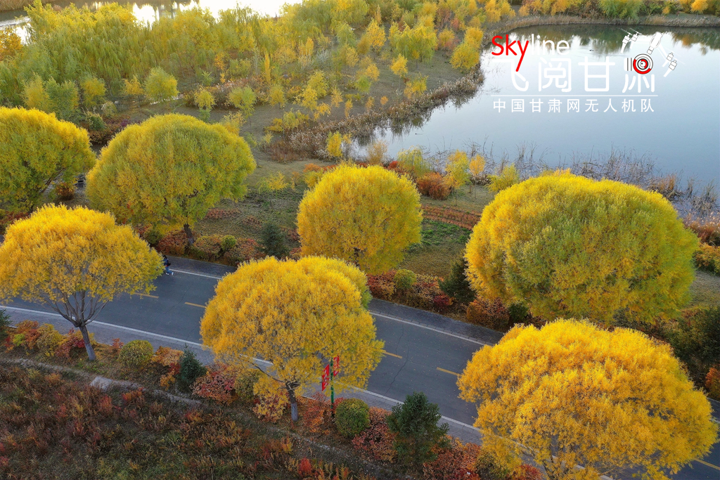 10月22日,甘肅省張掖國家濕地公園內(nèi)流光溢彩,秋意濃濃,金黃色的饅頭柳引人注目。