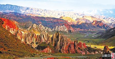 木星谷位于肅南縣大河鄉(xiāng)紅灣村境內(nèi),占地面積十多平方公里,地勢(shì)開闊遼遠(yuǎn),地貌景觀豐富多彩,既有以色取勝的五彩迎賓山,又有以型取勝的神奇萬(wàn)佛山、七彩飄帶峽、萬(wàn)卷天書峽、巨型轉(zhuǎn)經(jīng)輪等絕世奇觀,是真正意義上的地貌大觀園。上述景觀稀缺孤傲,磅礴大氣,以特有的稟賦傲立于世,帶給人強(qiáng)烈的震撼。