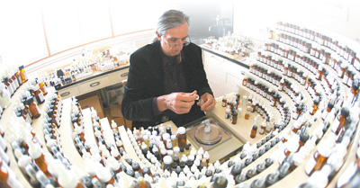 法國(guó)一名專(zhuān)業(yè)調(diào)香師在配制香水。資料圖片