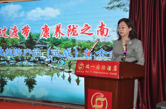 胡桂蕓在致辭中說,隴南和武威兩市文化旅游資源各具特色、互有優(yōu)勢,具有很強的差異性和互補性,隨著“一帶一路”建設(shè)的深入推進,兩地經(jīng)濟社會和文化旅游的交流將更加活躍。尤其是環(huán)西部火車游旅游專線列車的開通,更加拉近了兩地的時空距離,極大地方便了兩地游客的出行。通過今天的推介活動,我們希望參加會議的旅行社、自駕游俱樂部,多組織武威的游客來隴南觀光旅游、康養(yǎng)休閑。同時,也希望隴南的文旅部門及旅游景區(qū)、旅行社提供各種優(yōu)惠以及優(yōu)質(zhì)服務(wù),為促進兩地文化旅游事業(yè)的合作共贏做出積極的貢獻。