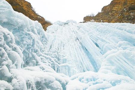 往日飛流直下的山泉瀑布,在冬日里幻化成一排排幾十米寬的銀瀑,從崖壁上垂瀉而下。山谷下,石壁間,清一色的玉白,宛如一座巨大的冰簾,順著崖壁的走勢(shì),或凸出或凹進(jìn),層層疊疊將整個(gè)峽谷環(huán)抱起來(lái)。冰瀑、冰簾、冰柱、冰舌,有的相銜相連,有的各自為政,交替排列。如雕似塑,似瑪瑙,像琉璃,晶瑩透亮。冰下暗流涌動(dòng),嘩嘩的水聲,由高到低在冰下輕響。一時(shí)間,仿佛置身于潔白無(wú)瑕的童話(huà)世界。朋友不住地贊嘆:“這才是真正的冰清玉潔!”