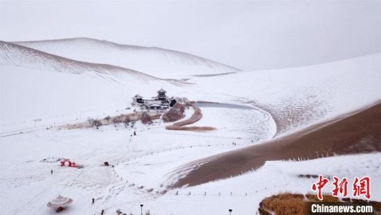 2月17日,甘肅敦煌迎來降雪天氣,大漠山川被皚皚白雪覆蓋,像一幅幅清秀淡雅的水墨山水畫。敦煌著名風(fēng)景區(qū)——鳴沙山月牙泉景區(qū)吸引游客前來觀賞難得一見的大漠雪景。這次降雪的特點(diǎn)是降雪量大,但氣溫并不是很低,游人盡情體驗(yàn)“沙雪交融”的絲路盛景。(王斌銀 張曉亮)