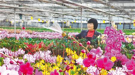 臨洮縣三易花卉種植基地的技術(shù)人員正在給蝴蝶蘭澆水。新甘肅·甘肅日?qǐng)?bào)通訊員 邊國(guó)鵬