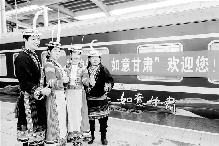 為落實(shí)甘肅省“旅游強(qiáng)省”戰(zhàn)略,自2018年開始,依托甘肅境內(nèi)豐富的旅游資源和鐵路客運(yùn)資源優(yōu)勢,以“一列車、一張圖、一種游”為思路,“環(huán)西部火車游”客運(yùn)旅游產(chǎn)品上線,讓“列車?yán)@著景點(diǎn)過”變成“火車朝著景點(diǎn)開”,在實(shí)現(xiàn)“引客入甘”等方面發(fā)揮了積極作用。2020年,在甘肅省文化和旅游廳的大力支持下,立足疫情常態(tài)化防控背景,“環(huán)西部火車游”實(shí)現(xiàn)跨區(qū)域王牌旅游產(chǎn)品“三級跳”:“五一”期間開通隴南到敦煌的旅游線路,打通“如意甘肅”全境全線;8月份,打通四川、重慶、陜西、寧夏、青海等西部6省區(qū)市跨省游小環(huán)線;九月底,隨著由甘肅文旅牽頭的“環(huán)西部火車游”跨區(qū)域旅游產(chǎn)品從廣西一路開到新疆,一條綠色長龍,儼然一艘“陸上郵輪”,串起西部旅游黃金線,打造出一條“坐著火車游西部”的文旅經(jīng)濟(jì)消費(fèi)帶。