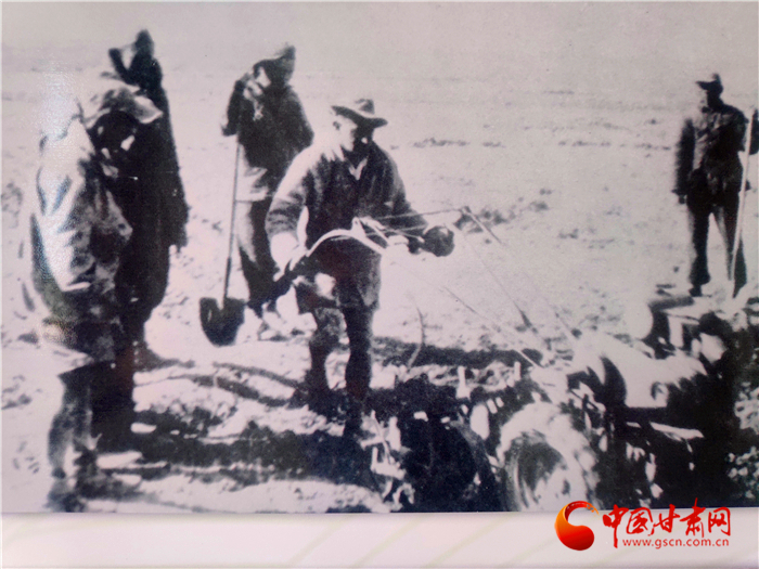 上個世紀40年代,山丹四壩灘上,山丹培黎學(xué)校農(nóng)業(yè)組的學(xué)子在種地中學(xué)習(xí),還實施了灌溉引水澆地。