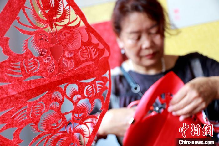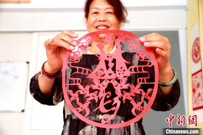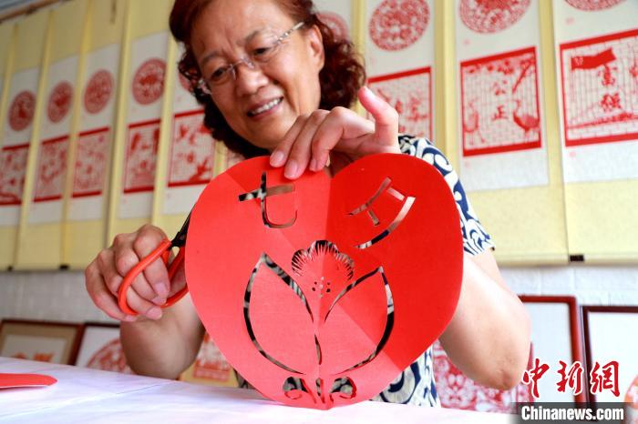 原標題:山東高密:非遺傳人巧手剪紙迎“七夕”