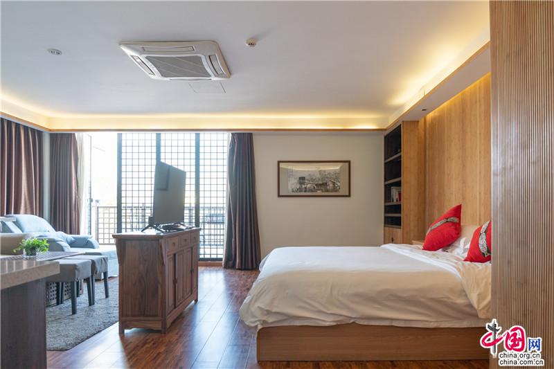 再往里去,一樓寬廳獨享私密愜意的生活場,步入二樓現(xiàn)代風格的房間有著通透的玻璃窗和勾勒日光的灰瓦房,大有歲月靜好的歡喜。