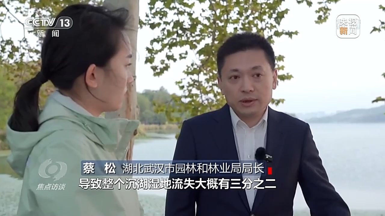 湖北武漢市園林和林業(yè)局局長(zhǎng) 蔡松:圍湖造田、養(yǎng)魚,導(dǎo)致整個(gè)沉湖濕地流失大概有三分之二,比較嚴(yán)重。從2013年開始,武漢市加大對(duì)沉湖濕地的整治力度,通過生態(tài)補(bǔ)償?shù)姆绞?,整個(gè)退漁還濕達(dá)到了7.8萬畝。