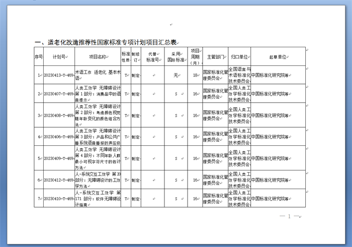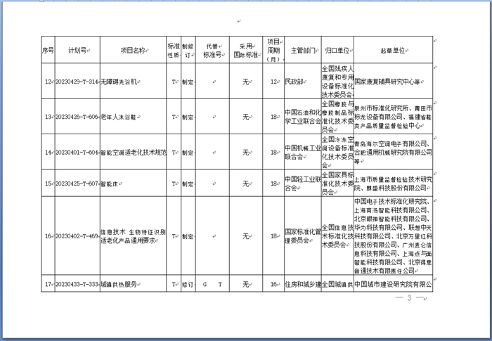 國家標準化管理委員會(以下簡稱國家標準委)發(fā)布《關于下達適老化改造推薦性國家標準專項計劃及相關標準外文版計劃的通知》(以下簡稱《通知》)。《通知》稱,為實施積極應對人口老齡化國家戰(zhàn)略,對照全國政協關于加快推進社會適老化改造的民主監(jiān)督事項,經研究,國家標準化管理委員會決定下達適老化改造推薦性國家標準專項計劃及相關標準外文版計劃(附后)。本批適老化改造領域推薦性國家標準專項計劃共計39項,其中制定35項、修訂4項。