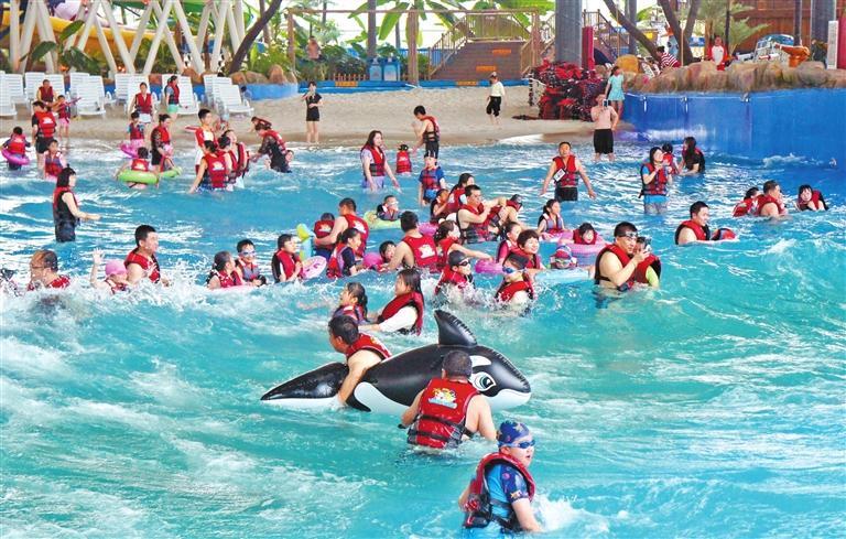 游客在西部恐龍水樂(lè)園戲水。資料照片