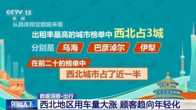 在地域上,可以看到今年西北地區(qū)的用車量大漲,而且涌入了大量的年輕客戶群體。從具體預(yù)訂數(shù)據(jù)來看,在出租率最高的城市榜單中,西北占了3城:分別是烏海、巴彥淖爾、伊犁。而在前二十的榜單中,西北城市占了近一半。