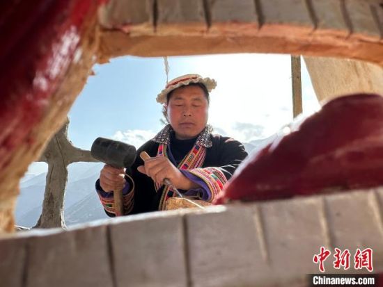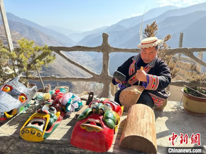雕刻、打磨、上色……甘肅隴南市文縣鐵樓藏族鄉(xiāng)強曲村,白馬人薛剛一家四代人都精于木工。日前中新網(wǎng)記者走訪村子時,薛剛坐在自家院子里,伏案制作池哥晝所用面具。池哥晝是白馬人保留最完整、最具特色民族舞蹈,面具是重要道具之一。薛剛制作的面具不僅用于周邊村子的池哥晝中,而且被廣州、上海等地的客商購買收藏。他時常將自己的想象融入面具中,用心打磨使其更具“靈氣”。他說,白馬人中從事面具雕刻的手藝人不多,最近他物色了一個“00后”徒弟,對方興趣濃厚,希望將這門手藝保護(hù)傳承好。圖為薛剛在院子里雕刻面具。閆姣 攝
