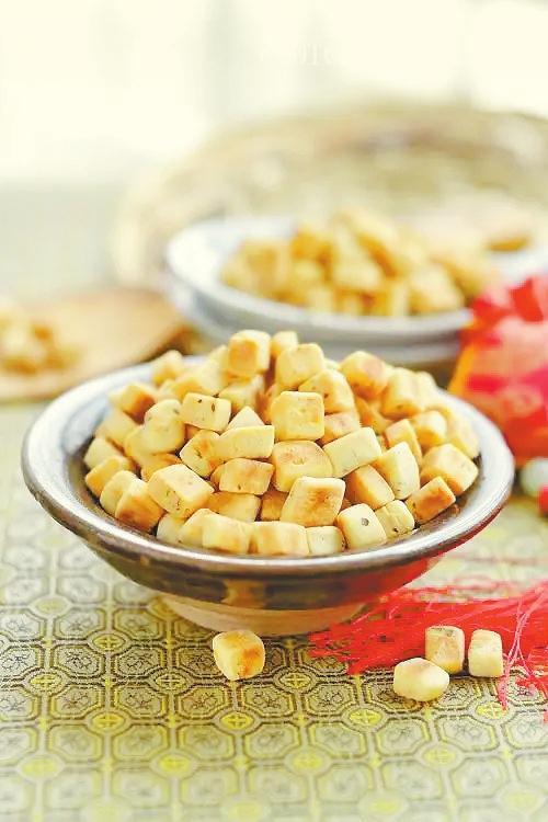 做面棋子,先和面。面里最好加豬油、雞蛋,攪拌均勻,加水,再揉,揉好面,搟開。不能太薄,也不能太厚,約半本語文書那般寬度即可。然后切,切成菱形,拇指大小,撒面,一拌,以防粘連。麥草燒鍋,鍋熱,放油。油熱,冒微煙,把面棋子放進鍋,反復(fù)翻炒,直到微黃。炒熟后,熄火,不蓋鍋蓋,再到鍋里“焙”(烤的意思)一陣,直到用勺子舀起,又倒下去,鐵鍋里叮當有聲即可。