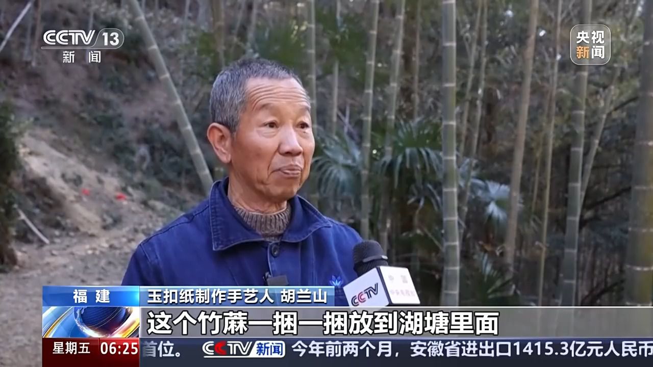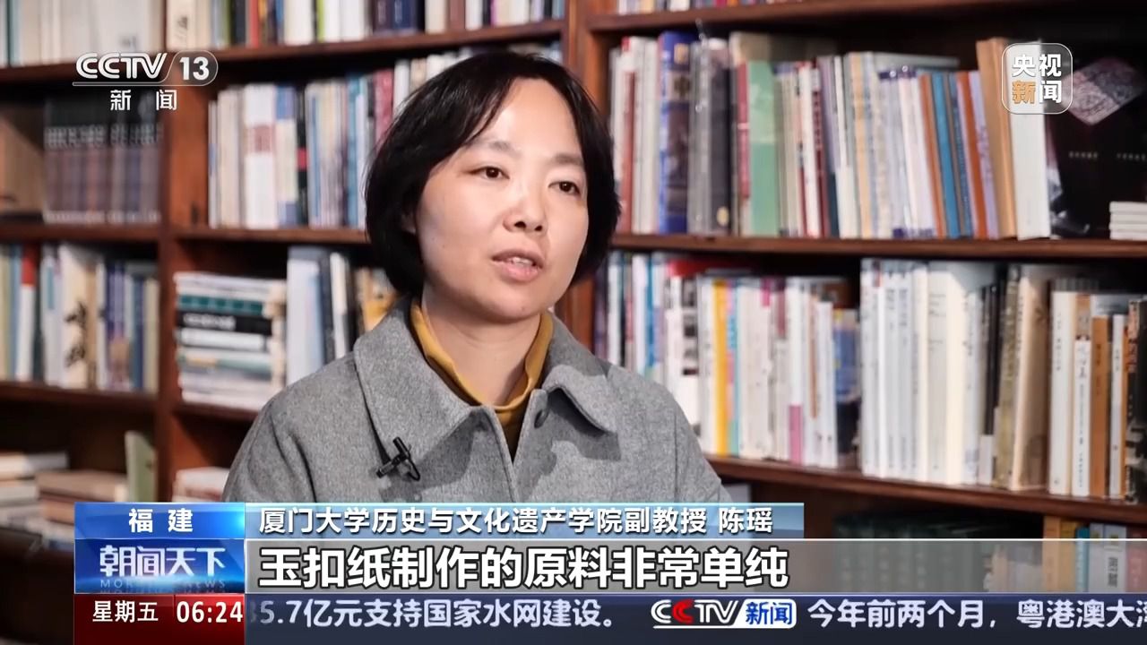 廈門大學(xué)歷史與文化遺產(chǎn)學(xué)院副教授 陳瑤:玉扣紙制作的原料非常單純。就是三種,一個是竹子嫩竹,第二個是石灰,第三個就是清潔的山泉水?;旧鲜羌兛咳斯磉M行品質(zhì)的管控。