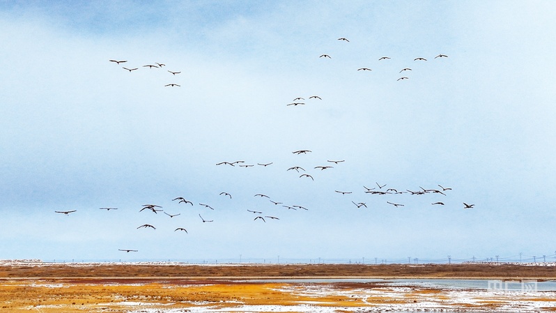 千只灰鶴在嘉峪關(guān)草湖國(guó)家濕地公園振翅高飛(央廣網(wǎng)發(fā) 嘉峪關(guān)市融媒體中心供圖)