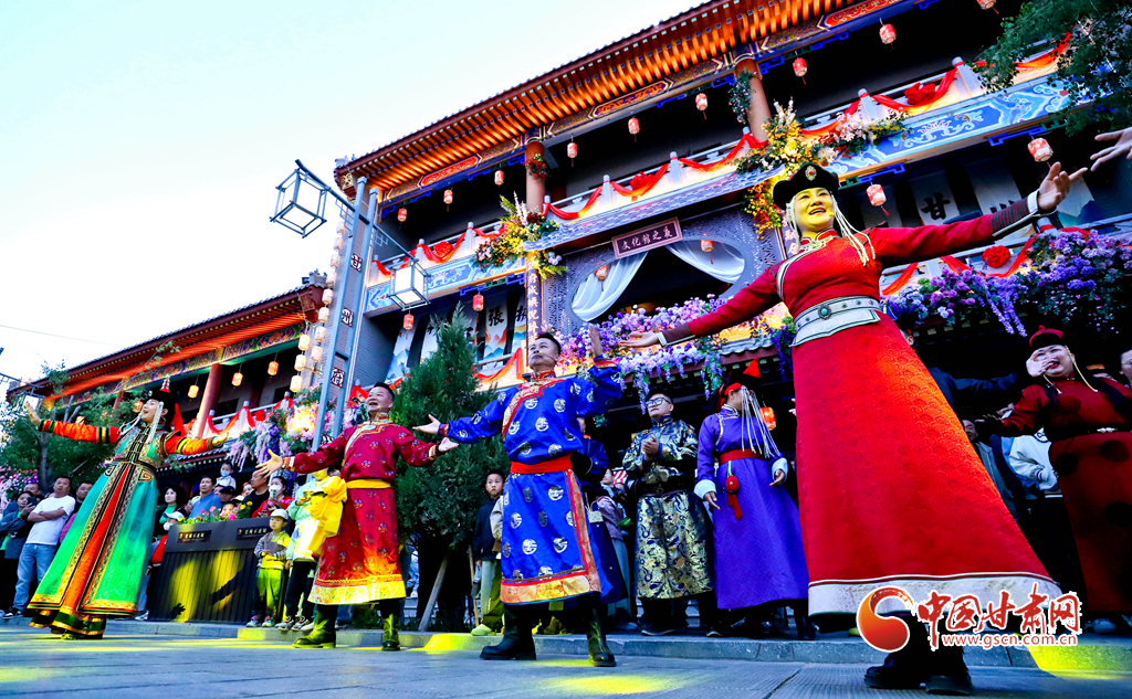 5月23日傍晚,張掖市甘州區(qū)甘州府城內(nèi)游人如織。內(nèi)蒙古阿拉善右旗烏蘭牧騎及裕固族、藏族歌舞演員,帶來特色的歌舞表演,皮影戲、面塑等非遺項目同步亮相。悠揚琴聲、優(yōu)美舞姿與靈巧技藝交織,為甘州府城文旅項目增添濃厚文化氛圍,讓游客沉浸于別樣的游玩體驗。
