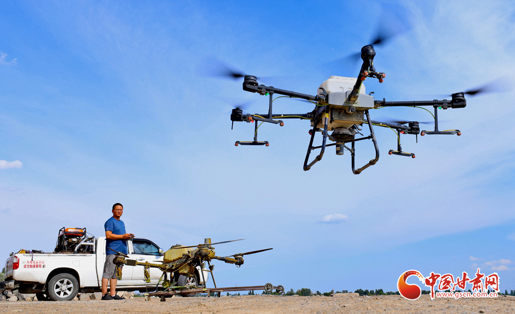 6月24日,在高臺縣夾溝湖水庫螃蟹養(yǎng)殖基地,無人機操作手啟動設(shè)備,載滿飼料的無人機沿預(yù)設(shè)航線在800多畝螃蟹養(yǎng)殖基地上空精準(zhǔn)投喂。